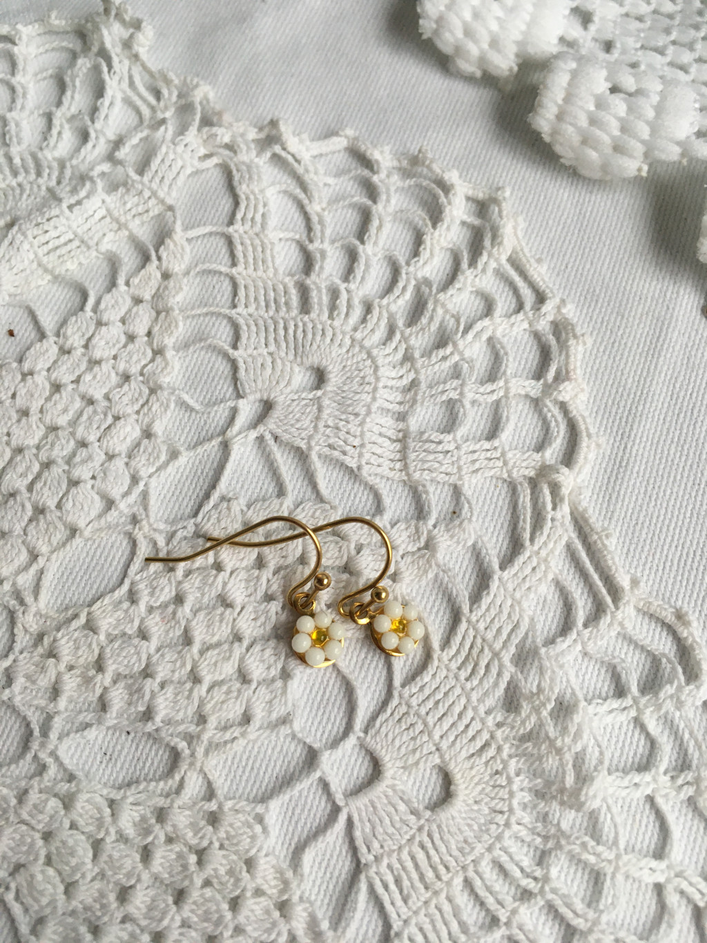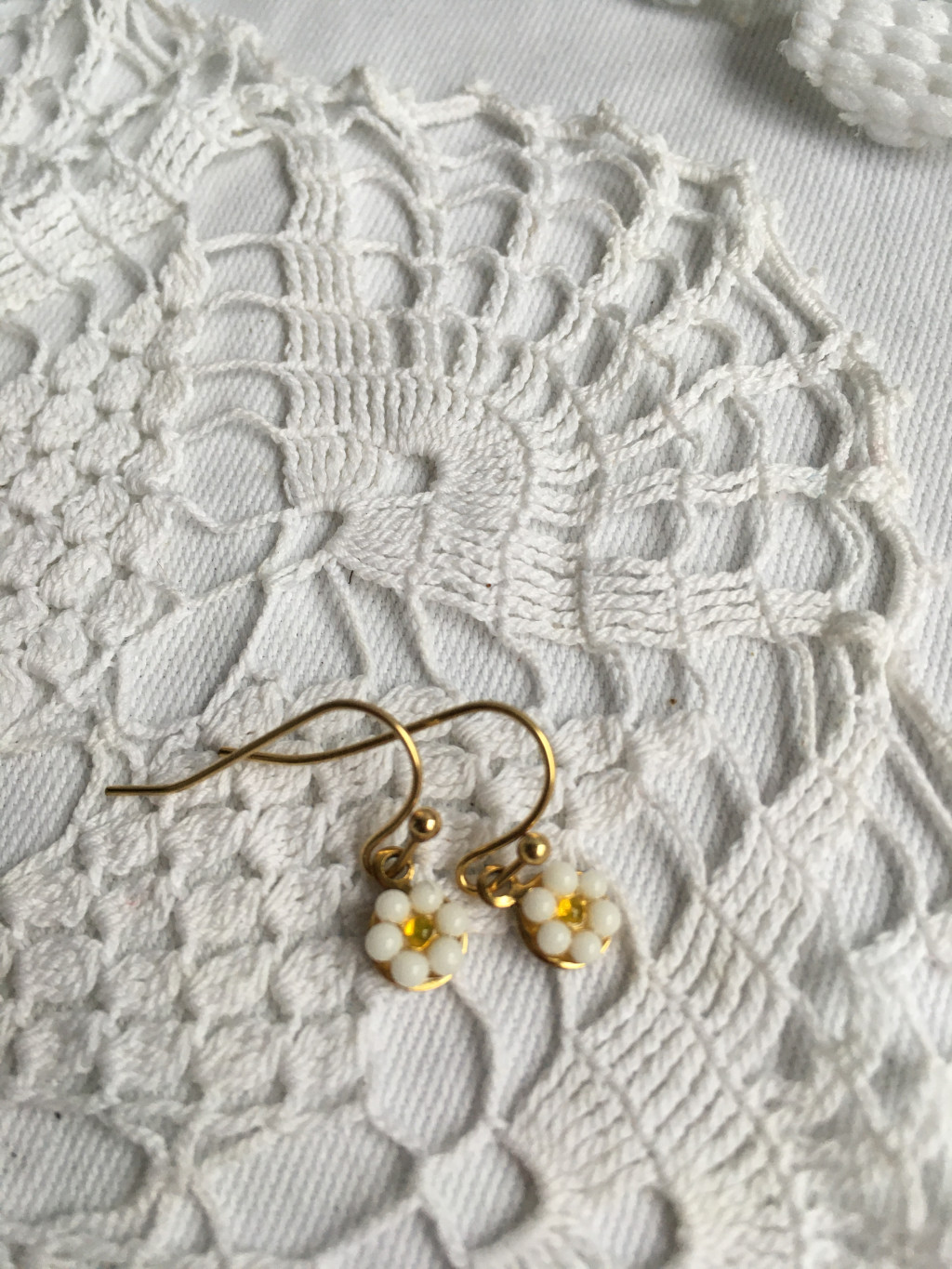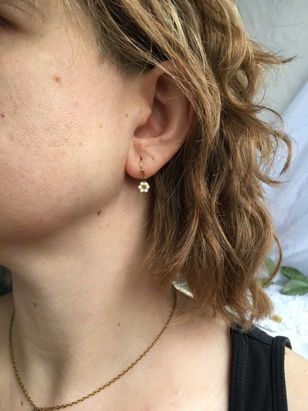 Margaréta kisvirág fülbevaló törmeléküvegből. A kisvirágok között a készítés jellege miatt apróbb eltérések lehetnek.