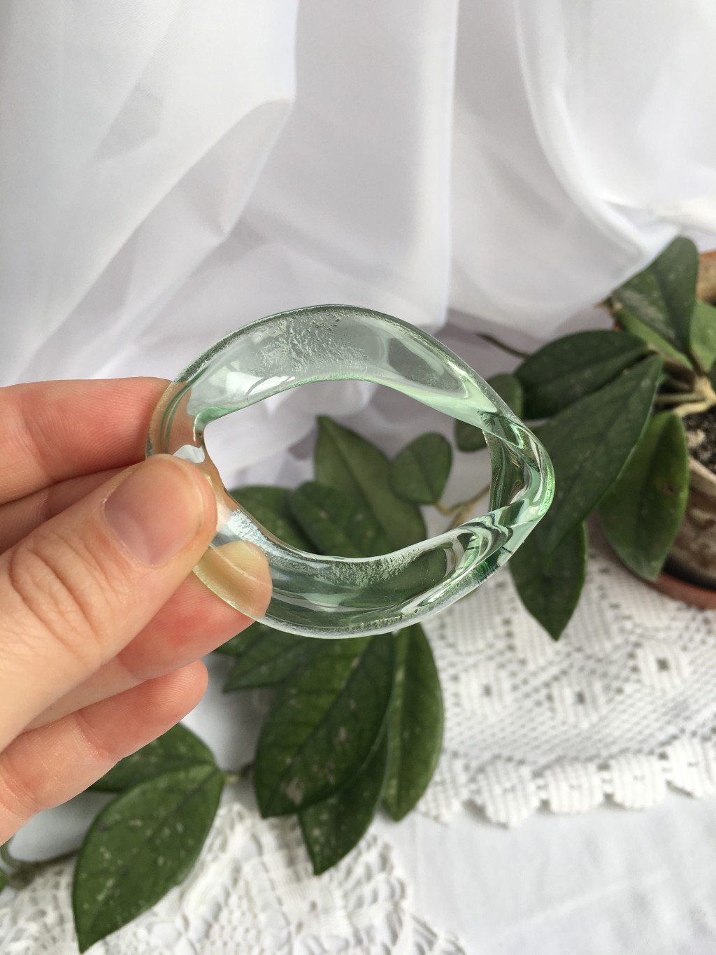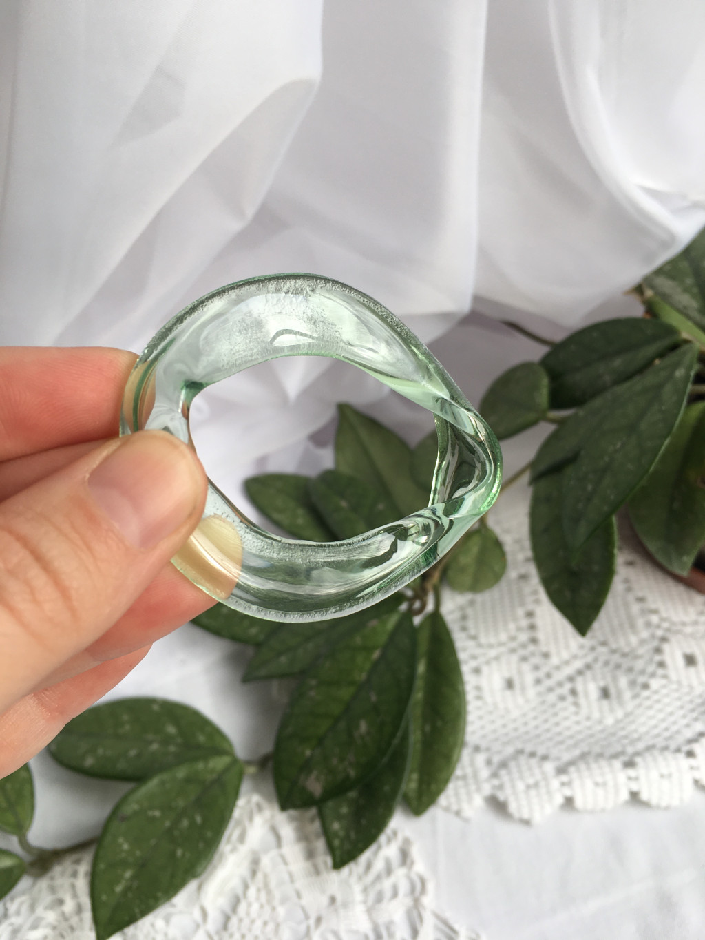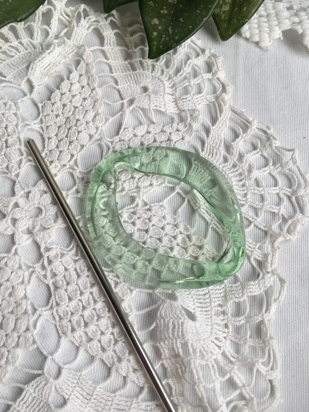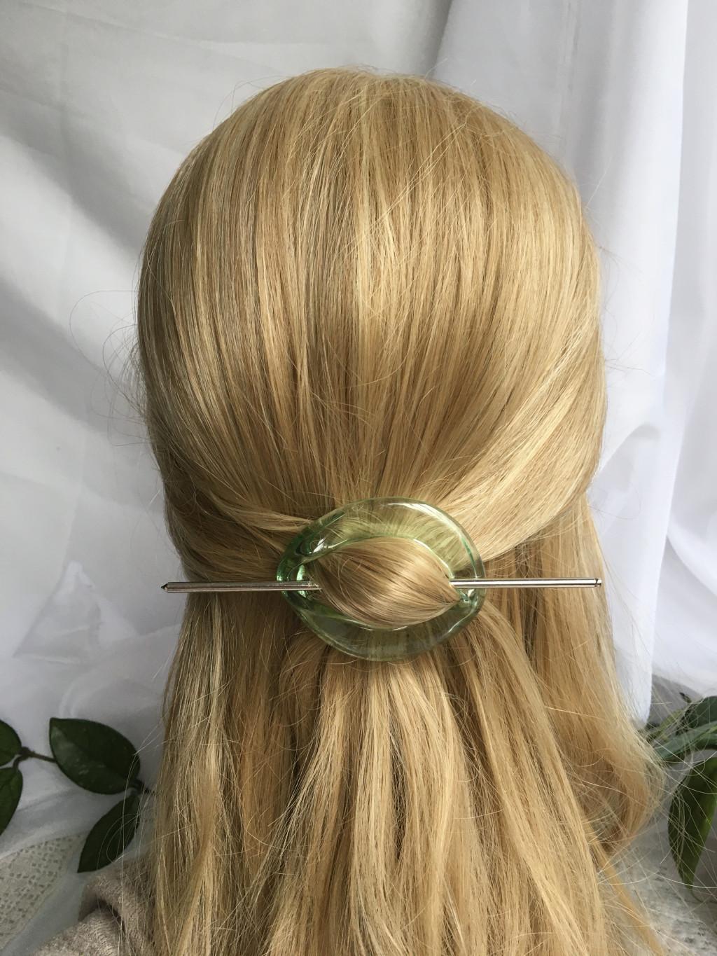 Borosüvegből olvasztott karika hajdísz világoszöld színben.